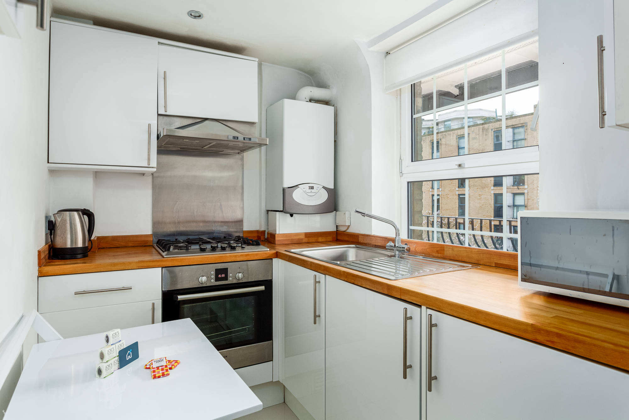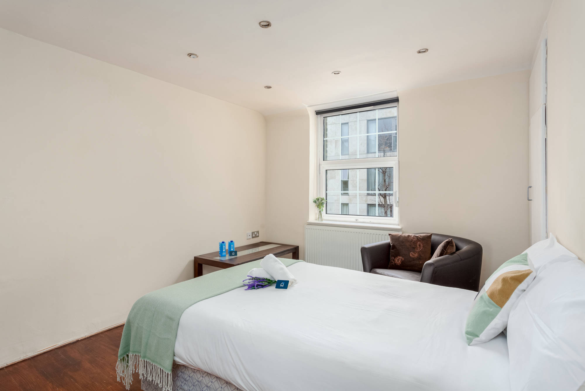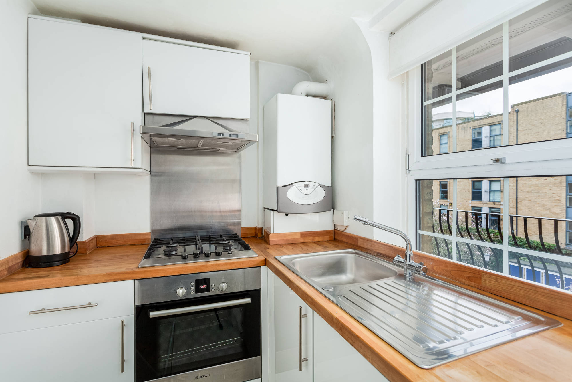 Newly refurbished second floor (with lift) studio apartment to let within purpose built development close to Victoria. The studio is entered into a hallway from which all rooms are accessed. Large studio room with double bed and seating area, separate kitchen with integrated appliances, fully tiled shower room. The property further benefits form wood flooring throughout, full wall of storage and communal courtyard gardens.