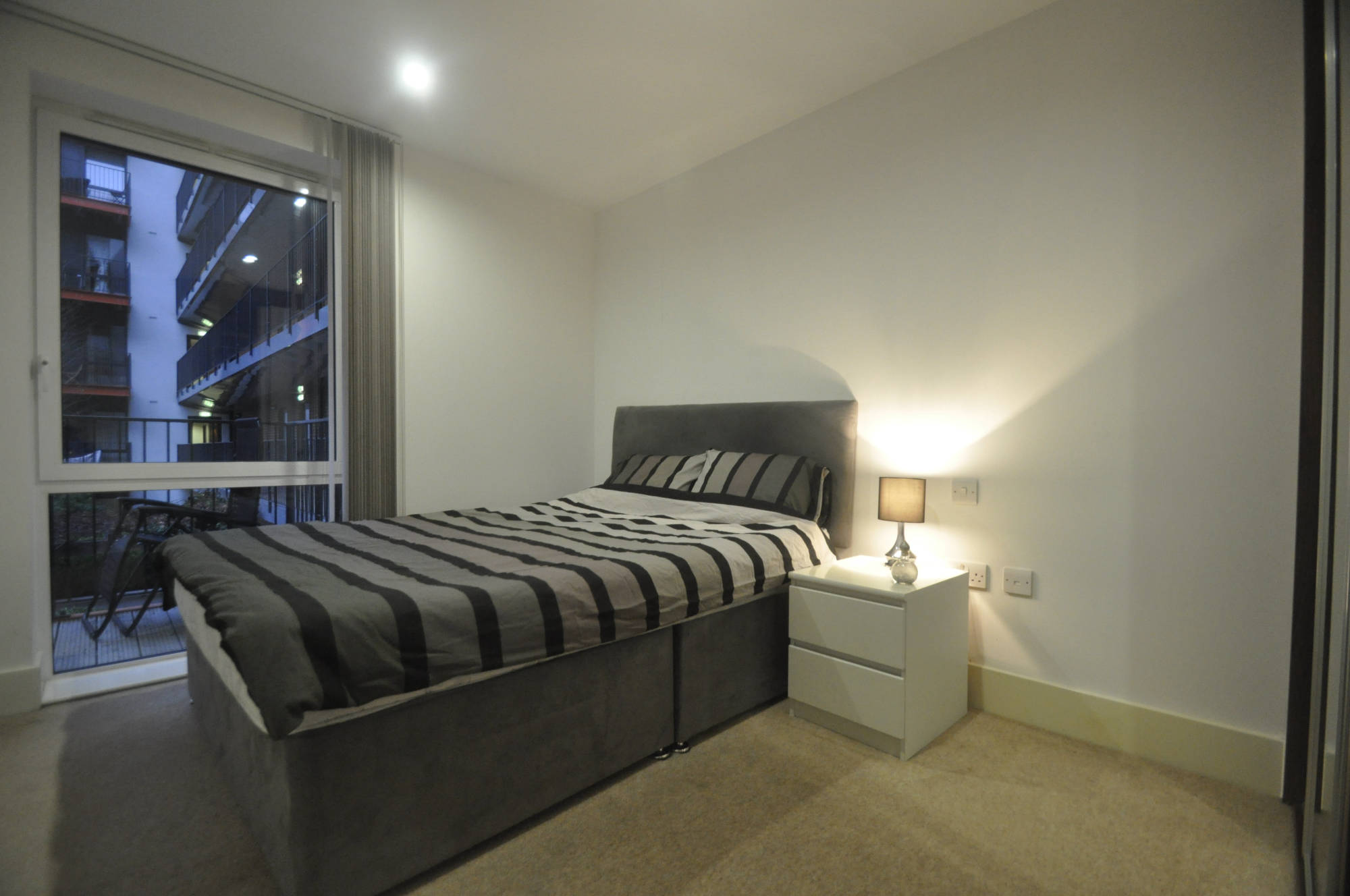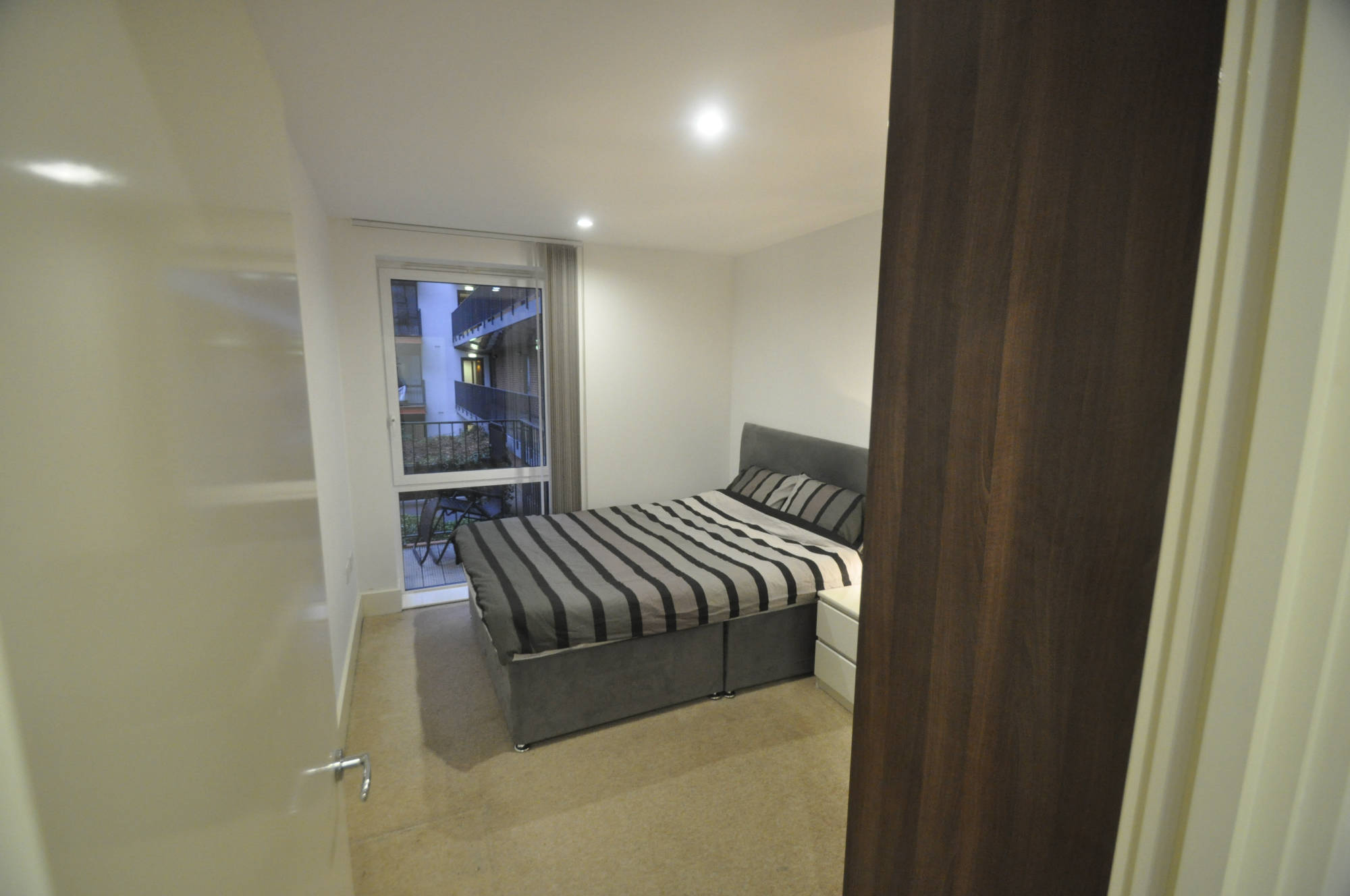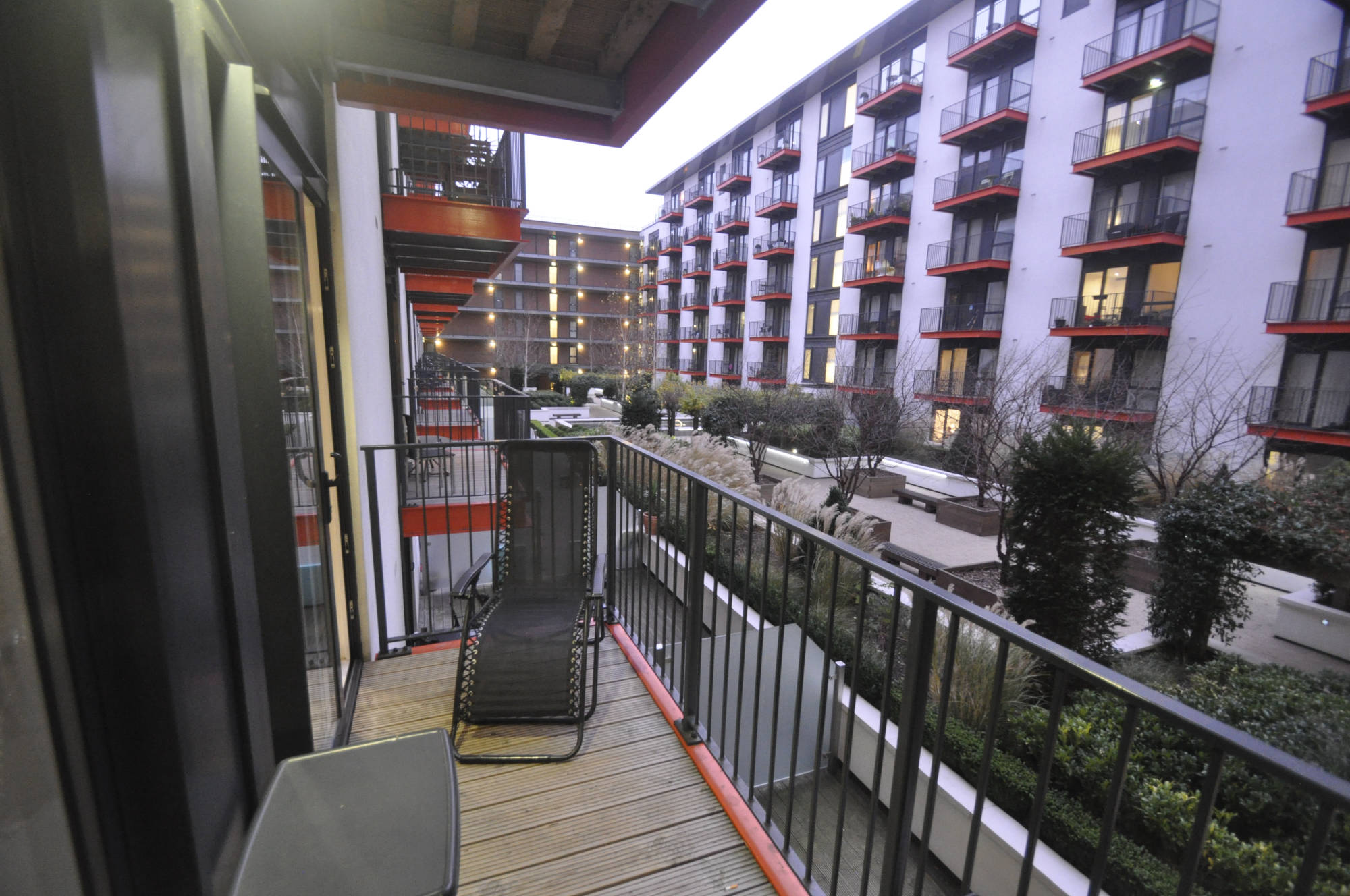 The flat is modern and located in a pedestrianised area. You have a kitchen/lounge with your own balcony overlooking a well kept yard with beds and benches. There is large bedroom with built-in wardrobe.